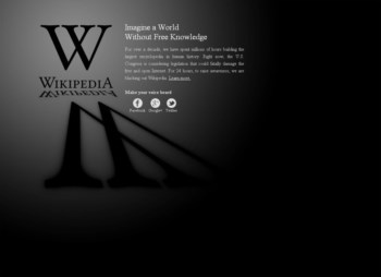 “Há mais de uma década que gastamos milhões de horas a construir a maior enciclopédia da história da humanidade. Agora, o Congresso dos Estados Unidos está a discutir legislação que pode matar uma Internet livre e aberta. Durante 24 horas, como forma de sensibilização, a Wikipedia está em baixo”, lê-se na página de entrada da versão em língua inglesa da Wikipedia. Na realidade, o “apagão” da versão em língua inglesa da Wikipedia pode ser contornado de duas formas – através do acesso a partir da versão mobile ou mesmo no computador, desactivando o Javascrip no browser.
