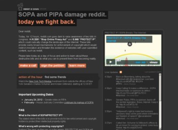 O dia 18 de Janeiro de 2012 vai ficar na história como o dia do primeiro “apagão” na Internet. Vários sites de referência, entre os quais a versão em língua inglesa da Wikipedia e o da plataforma de blogues Wordpress, bloquearam hoje total ou parcialmente o acesso às suas páginas, em protesto contra duas leis em discussão no Congresso norte-americano que poderão afectar o funcionamento de sites registados fora dos Estados Unidos – o Stop Online Piracy Act (SOPA) e o Protect IP Act (PIPA).